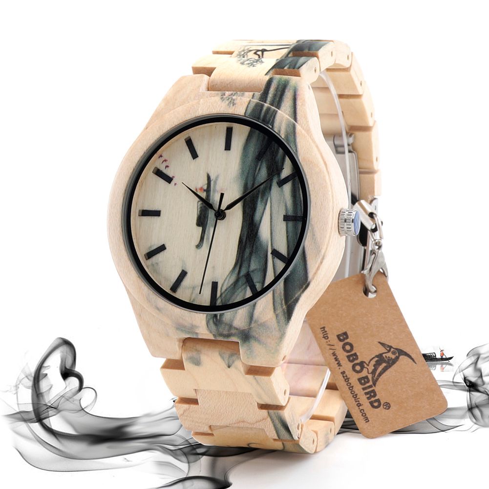Bobo Bird O17 Male Maple Wooden Watches Quartz Battery Movement Popular Clock For Men In Gift Box